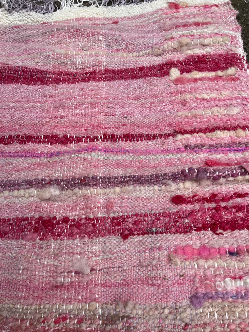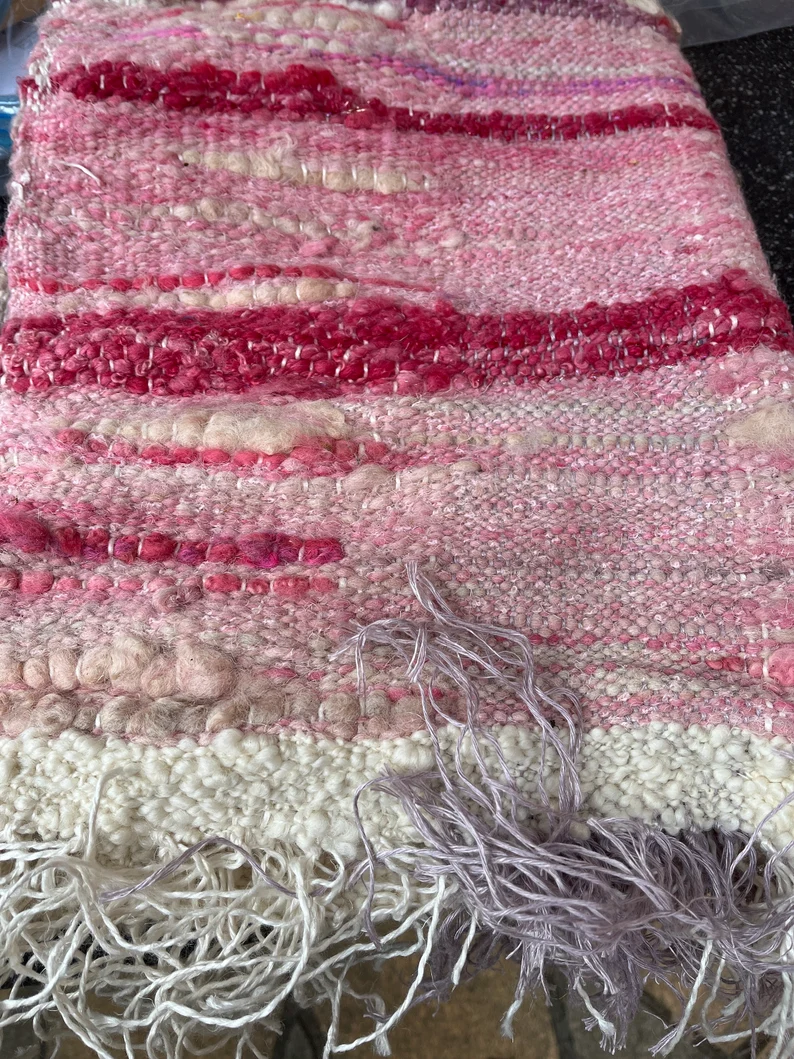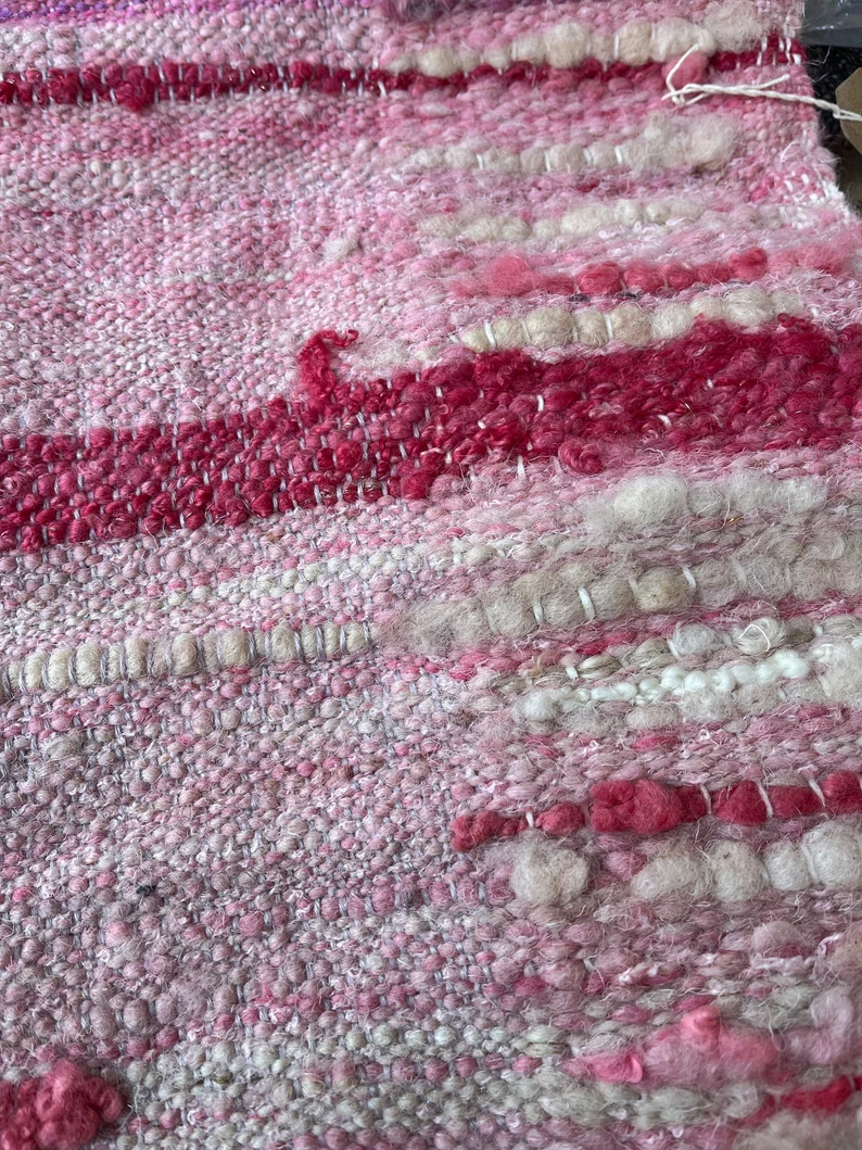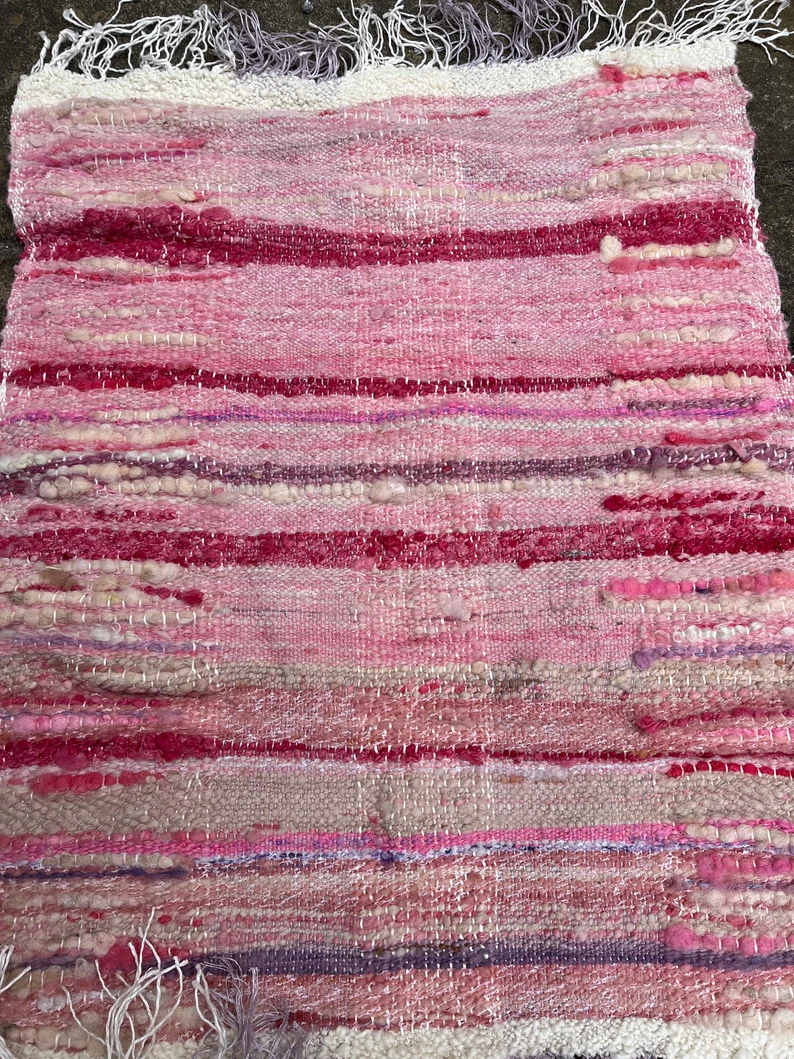 Produced from raw rarebreed UK fleece, this mat has been hand dyed and is a blend of creams and pinks