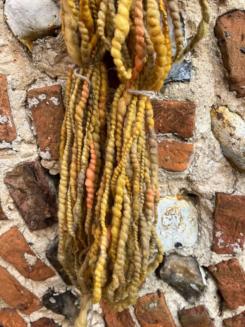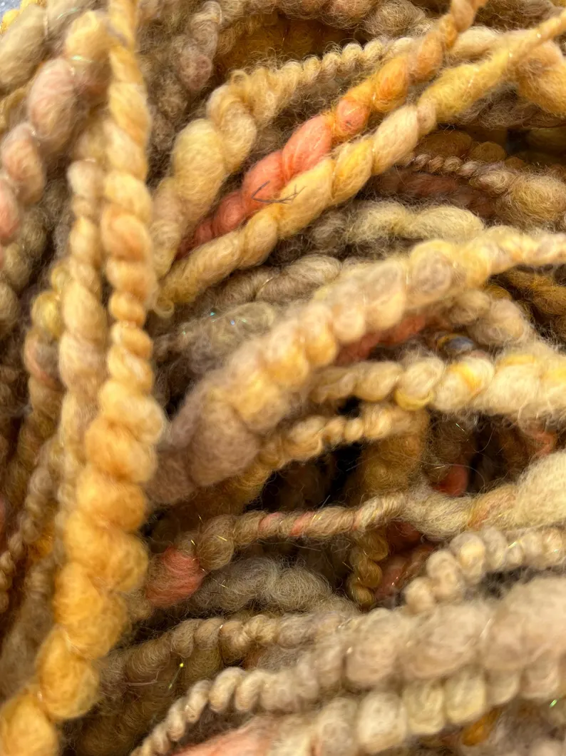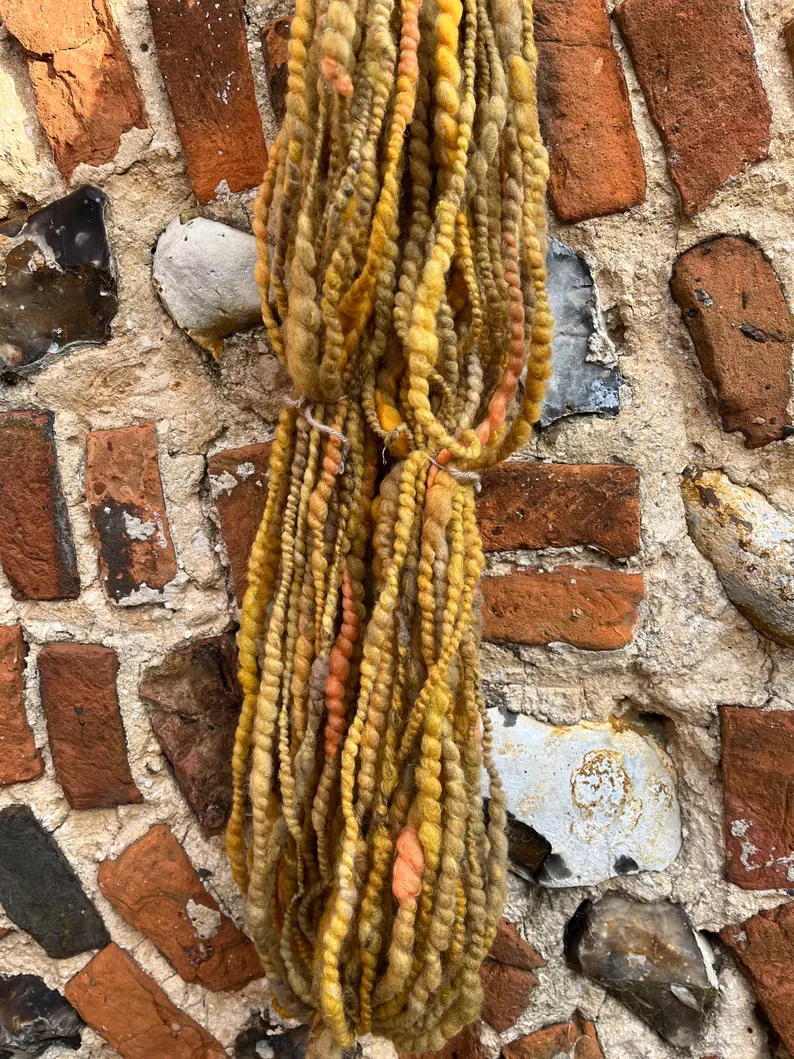 Approx 130g very pretty handspun yarn in shades of oranges, golds and yellows.