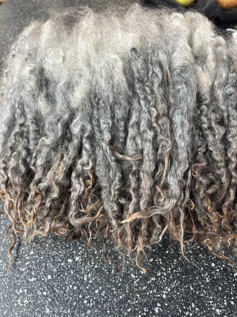 Approx 50g Leicester longwool curls naturally coloured from a young shearling ram – incredibly soft
