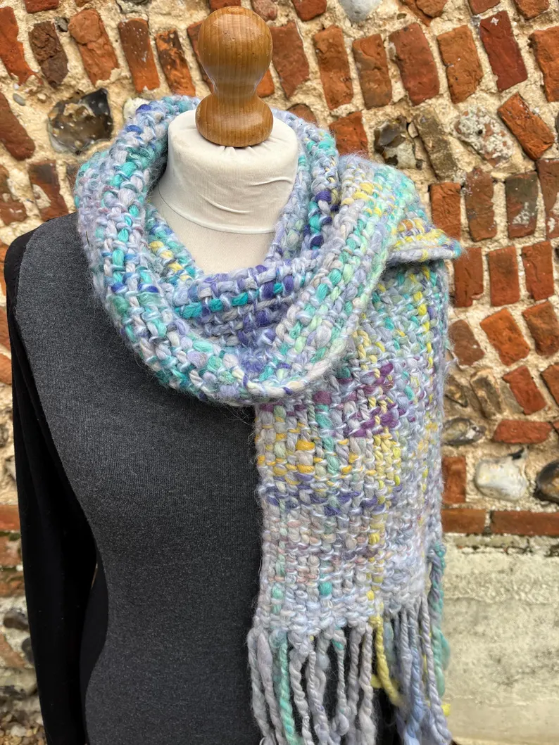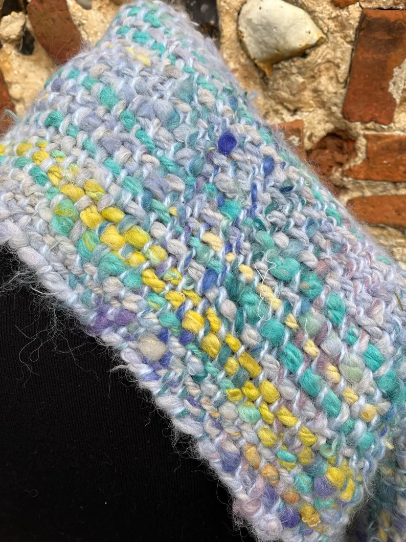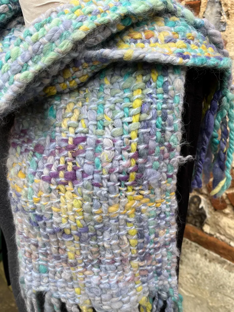 A completely unique and gorgeous hand made scarf – made from primarily alpaca fleece with wool