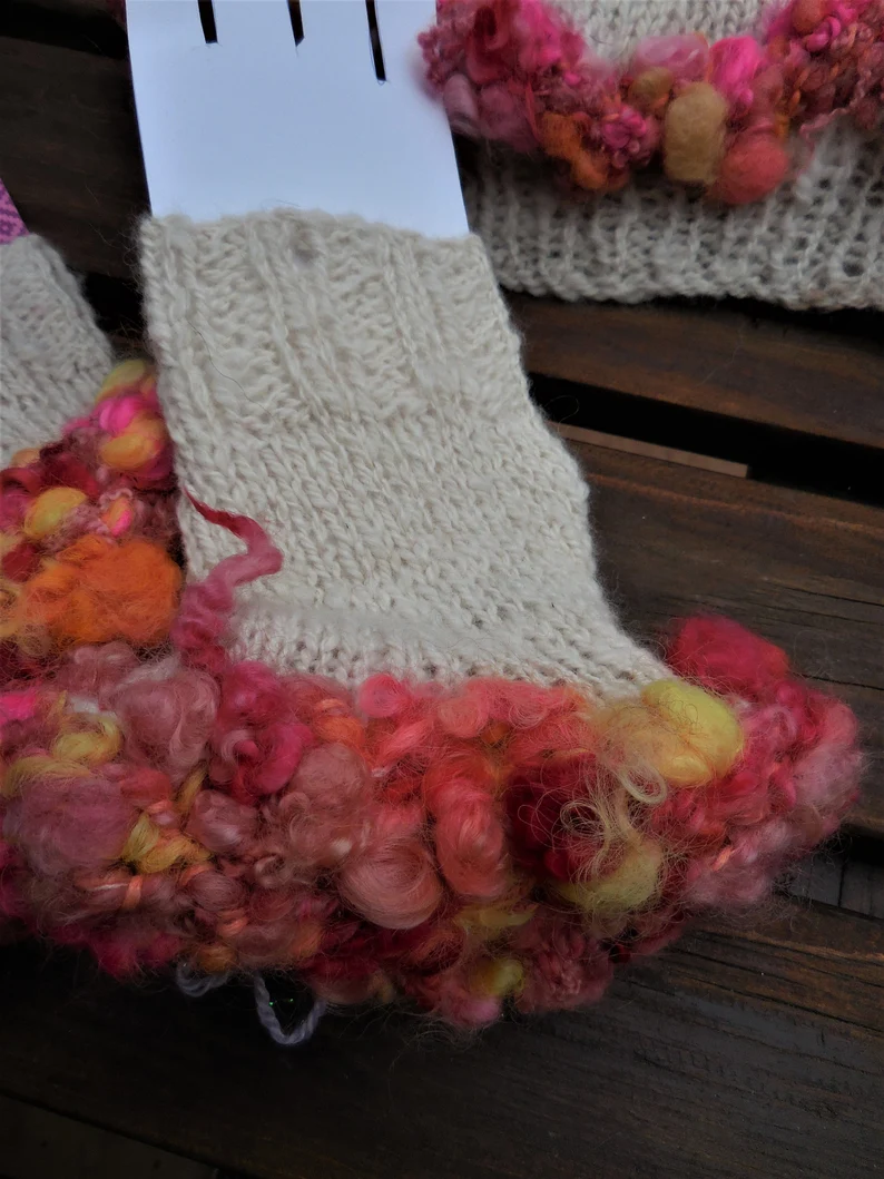 Handspun, hand-dyedd art yarn for the cuffs and badnd in the hat