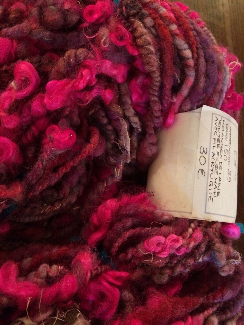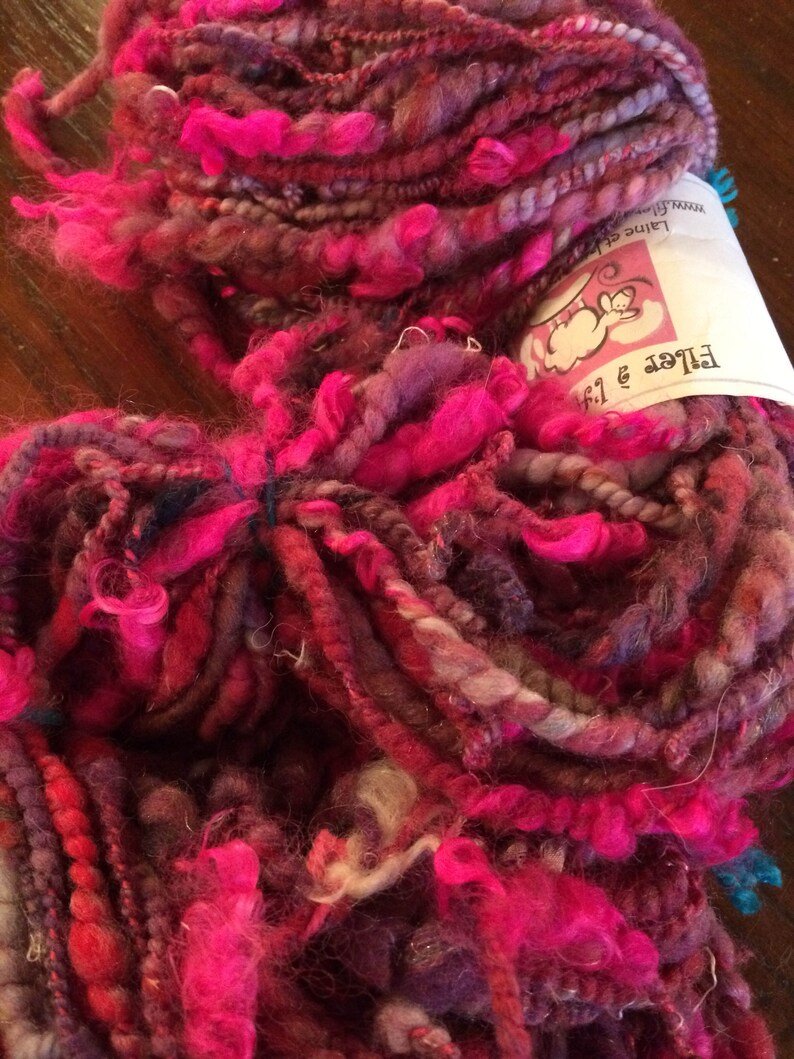 Hand washed – hand dyed – spun from raw fleece in shades of pinks and purples with teeswater curls, silk and a pretty acrylic yarn for the ply